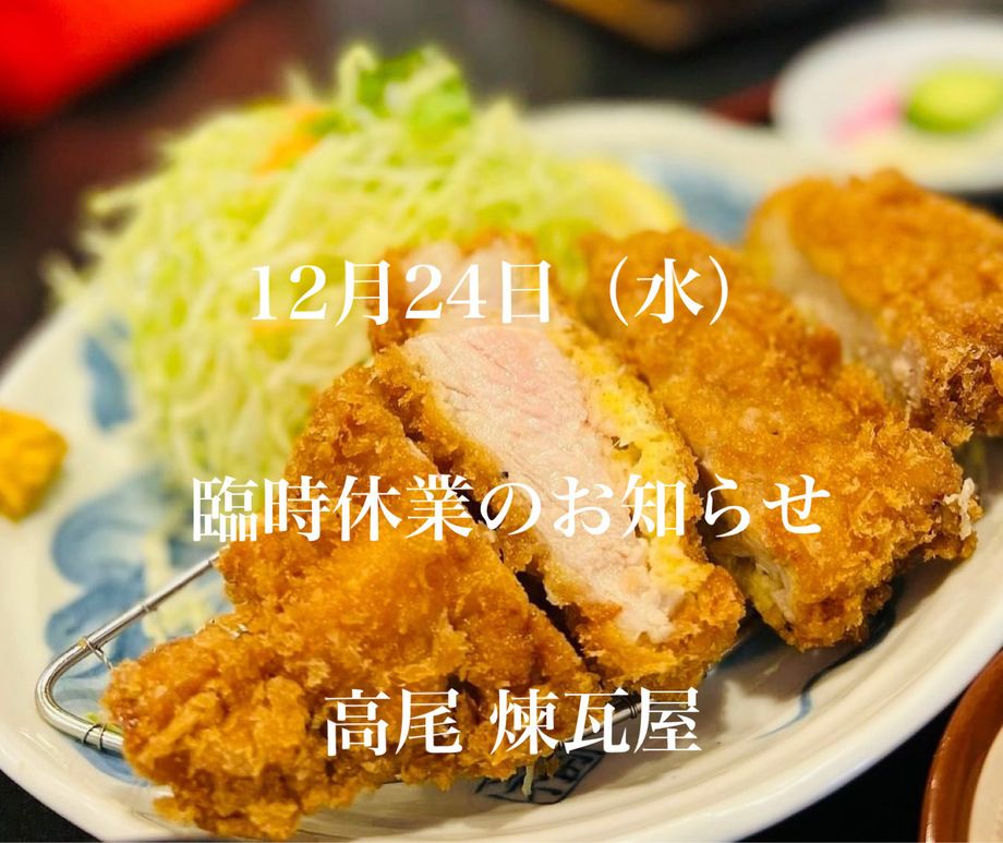 このたび、誠に勝手ながら 12月24日(水) は諸事により、臨時休業とさせていただきます。